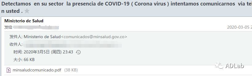£¨3£©Í¼2-4Êǹ¥»÷Õßαװ³É¸çÂ×±ÈÑÇÎÀÉú²¿µÄ¹¥»÷ÓʼþÖ®Èý¡£¡£¡£¡£¡£¡£ÓʼþÖ÷ÌâΪ¡°Detectamos en su sector la presencia de COVID-19 ( Corona virus ) intentamos comunicarnos via telefonica con usted¡±£¨·ÒëºóΪ£º¡°ÎÒÃÇÔÚÄúµÄ²¿·Ö·¢Ã÷ÁËCOVID-19( Corona virus )£¬£¬£¬²¢ÊµÑéͨ¹ýµç»°ÓëÄúÁªÏµ¡±£©¡£¡£¡£¡£¡£¡£